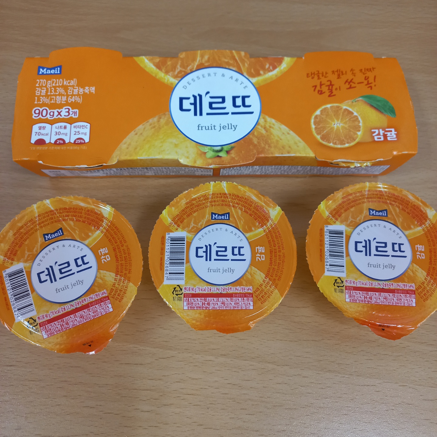 다음으로 매일 데르뜨는 과일 젤리였다. 과일 푸딩이라는 말이 더 정확했다. 속껍질까지 깐 감귤이 딱 2쪽 들어간 과일 푸딩이었다. 숟가락으로 떠 먹기 좋았고, 너무 단단하지도 묽지도 않은 적당한 농도였다. 무엇보다 심하게 달지 않은 게 좋았다. 단맛이 생명인 후식들도 모두 달지 않아야 선호하는 시대이다.