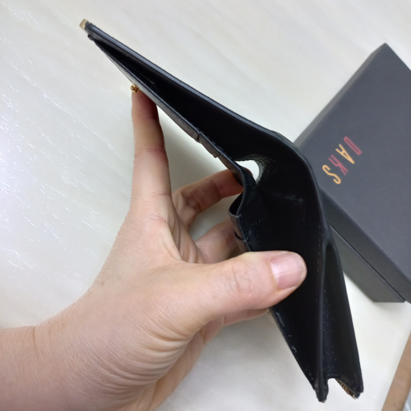 나는 DAKS라는 알파벳으로만 심플하게 로고가 되어 있는게 좋다. 이것저것 커다란 로고보다는 아주 심플하게 포인트로 DAKS라는 표기 말이다. 그런 면에서 이 지갑은 나의 조건을 충족했다. 주니어용처럼 약간 귀여운 느낌이다. 그래도 상관없다. 무거운 것보다는 작은게 나으니까. 계속 볼 수록 세련됐다. 큐빅 알이 큰게 아니고 아주 작은거라 실물로 보면 더 세련된 느낌이다. 보면 볼수록 예쁘다. 가죽의 질감도 좋다. 싼티나지 않고 고급스러워 보이는 질갑. 이음새 하나 없이 바느질도 꼼꼼하다. 약간 미니 반지갑이라고 봐야 한다. 카드 넣는 칸에 신분증을 넣는 투명창이 없고, 동전을 넣는 공간도 작은 편이다. 많은 동전을 가져다닐 수는 없다. 누가 동전을 얼마나 가지고 다니랴마는 그래도 작은 편이다. 작아서 세련되고 컴팩트한 건 사실이다. 부디 나름 큰 돈을 주고 산 거니까 오래 사용하면 좋겠다.