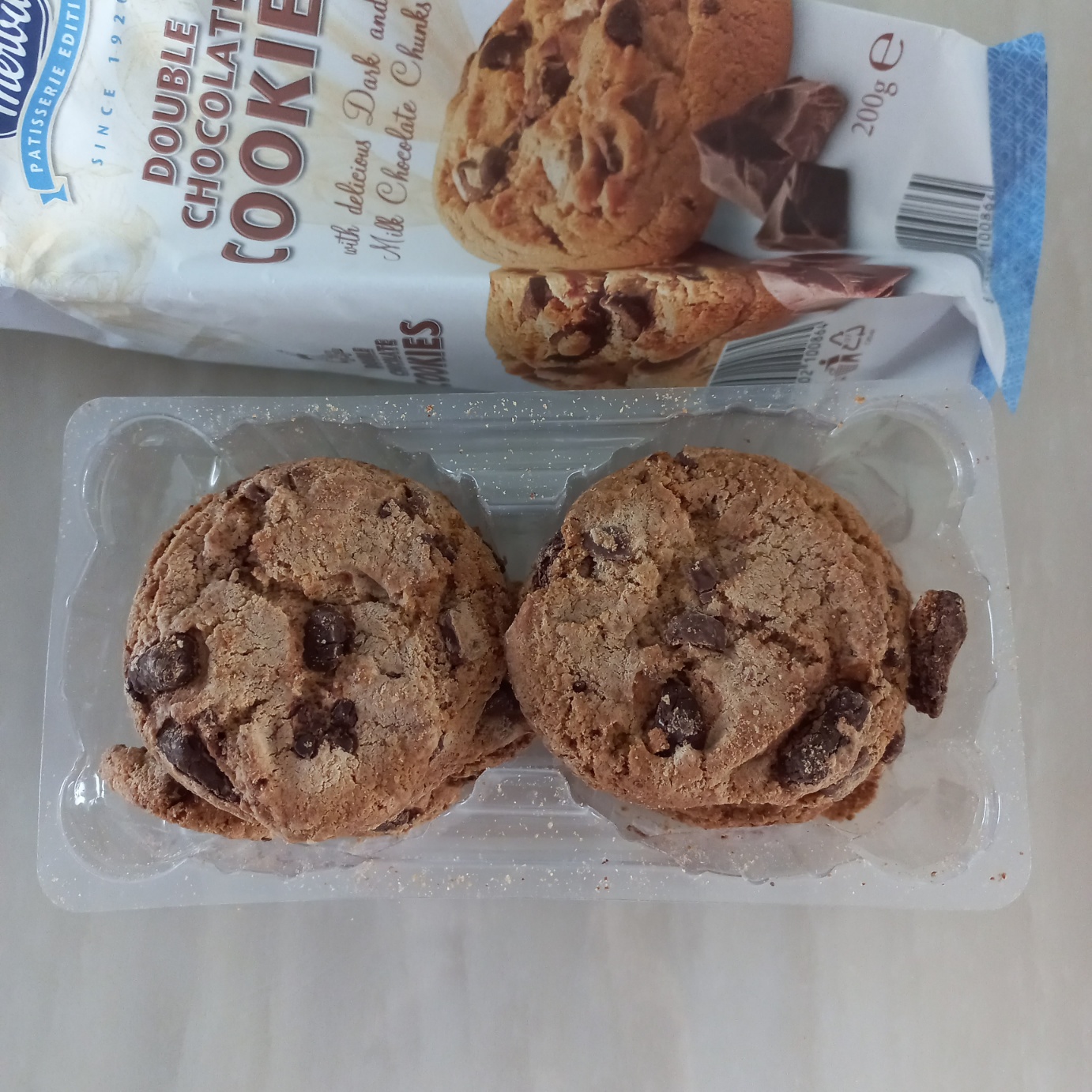 크리스마스 행사를 마치고 교회에서 쿠키를 한 봉지씩 선물로 나눠줬다. 받는 순간 '윽~ 외국 쿠키네.' 하는 마음이었다. 어찌됐든 선물은 선물이니 집에 와서 하나만 까서 먹어 봤다. 한 입 베어 문 순간 '오잉~ 맛있네. 요거 물건이네.' 하는 마음이 저절로 들었다. 물건이었다. 이렇게 초코릿이 통으로 박혀 있다니. 하나만 먹어도 될 정도로 두툼했다. 한 봉지 안에 큼지막한 쿠키가 8개 들어 있었다. 밀크초코릿과 다크 초코릿이 더블로 박혀 있었다. 박혀 있었다기보다는 그냥 초코릿 덩어리 그 자체였다. 가끔 달달한게 땡길 때, 완전 덩어리 초코릿은 좀 부담스럽고 밋밋한 과자는 너무 단조로울 때 메르바 더블 초코릿 쿠키를 먹으면 된다. 가끔 스트레스 받을 때, 마법에 걸린 날, 또는 기분이 우울할 때 더블 초코릿 쿠키가 제격이다. 외국 과자는 안먹는다던 내가 이제 메르바 더블 초코릿 쿠키를 쟁여놓고 생각날 때 하나씩 먹게 된 것이다. 잘 알지도 못하는 외국 쿠키를 처음 먹고 이렇게 글까지 쓸 정도면 내가 상상히 이 쿠키에 반한 모양이다.
