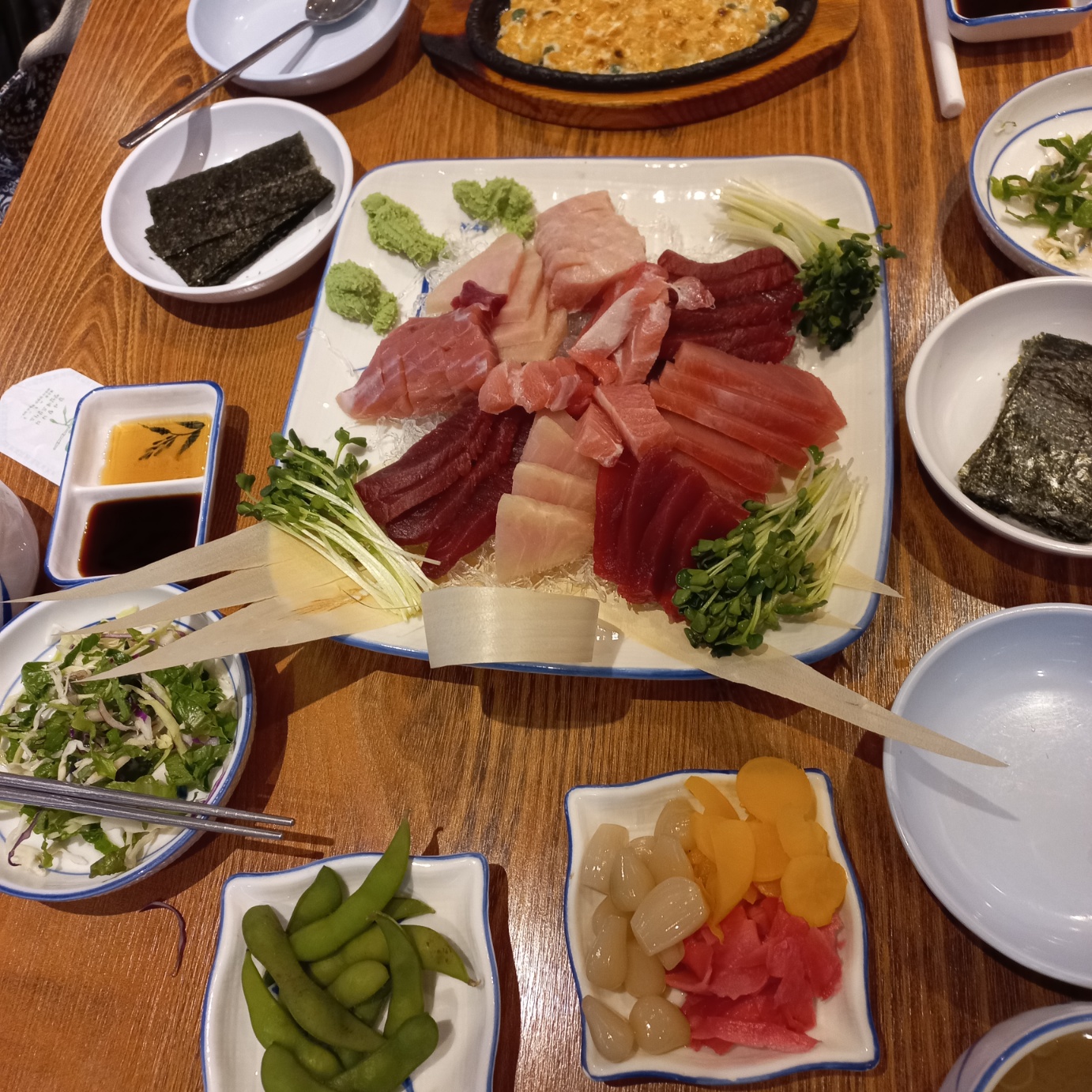 처음 한 접시를 먹고 두 번째로 리필해달라고 하니 한참을, 아주 한참을 기다린 후에 갔다줬다. 그 때부터 먹기 싫어졌다. 너무 느리게 갔다줬다. 그리고 다시는 리필을 시키지 않았다. 회가 원래 질려서 많이 먹지도 못하지만 굼뜨게 주문받는 자세가 먹는 기분을 상하게 만들었다. 나중에 보니 물도 안 갖다 줘서 옷 입고 가기 전에 물을 달라고 하고 서서 물을 마시고 나왔다. 서비스가 많이 떨어졌다. 외식을 하고 아주 기분 좋았다는 생각이 별로 안 들었다. 말이 무한 리필이지, 우리는 딱 한 번만 리필을 했다. 너무 늦게 갖다줘서 먹고 싶은 마음이 다 사라져 버렸다. 처음 상차림을 보고는 약간 들떴는데 느린 서비스와 약간 불친절한 태도가 불편했다. 친절까지는 아니더라도 기본적인 서비스 정신은 가지고 있었으면 좋겠다. 첫 접시는 맛있었는데 느린 태도에 두 번째 접시부터는 맛이 떨어진게 느껴졌다. 분명 첫 접시와 같은 참치회일텐데 말이다. 두 번째 접시가 오기까지 아무 음식도 없이 한참을 멀뚱멀뚱 기다리는 동안 마음에서는 X자를 그리고 있었다 . 그때부터 먹을 맛이 이미 떨어져버린 것이다.