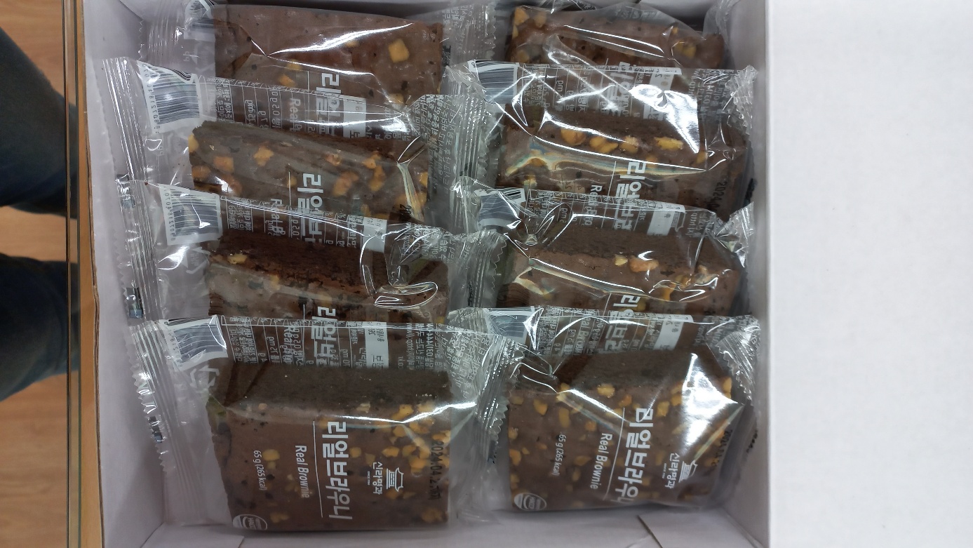 브라우니하면 진득한 초코렛맛이 강하기 마련인데 신라명과 리얼 브라우니는 호두조각으로 토핑이 되어 있었다. 견과류가 있으면 더 영양적으로 완성이 되겠지만 난 오직 리얼 브라우니 먹고 싶었기 때문에 호두조각이 있는 것은 선호하지 않는다. 그렇다고 내가 직접 만들어 먹을 수도 없고, 그냥 시판용으로 부담없이 사먹을만한 가격과 양이다. 우유와 함께 한끼 식사로도, 블랙커피와 함께 간식으로 충분한 양과 맛을 자랑한다.