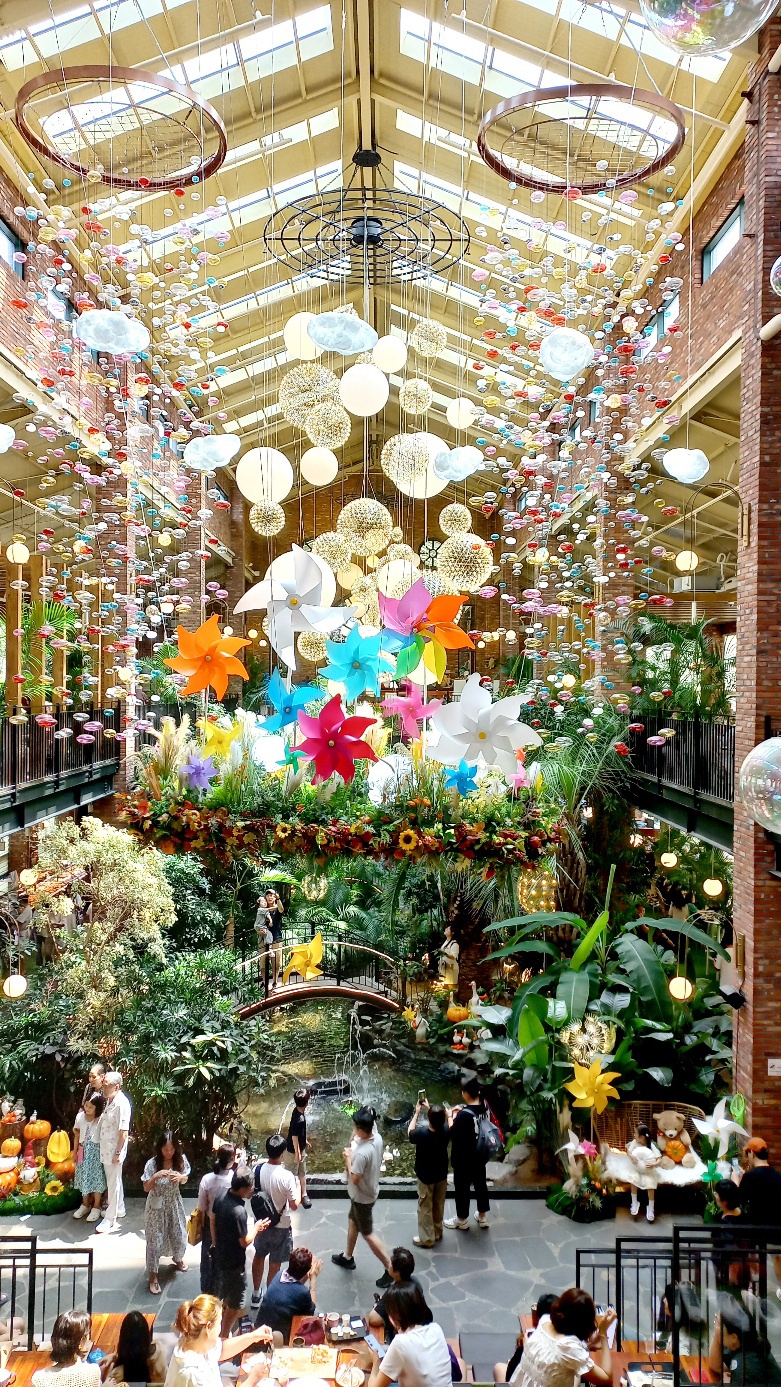 요새는 까페가는 것도 나들이의 한 가지 방법이다. 단지 커피를 마시기 위해 가는 것이 아니다. 그 공간을 즐기기 위해서 가는 것이다. 포레스트 아웃팅스는 일단 인테리어를 상세하게 봐야 한다. 분수와 연못, 구름다리, 숲에 온 느낌이 드는 울창한 나무들과 놀이 공원에 온 듯한 풍선 장식과 오브제들.... 어느것 하나 눈요기를 안 할수가 없는 인테리어였다. 음표의 높은 가격대와 차를 몰고 나와야 하는 위치에 있는 상황 때문에 이용객들은 거의가 중장년이었다. 물론 가족단위로 어린 아이들이 동행을 하기는 했지만 주 타겟은 돈이 있는 중장년을 위한 느낌이었다.
