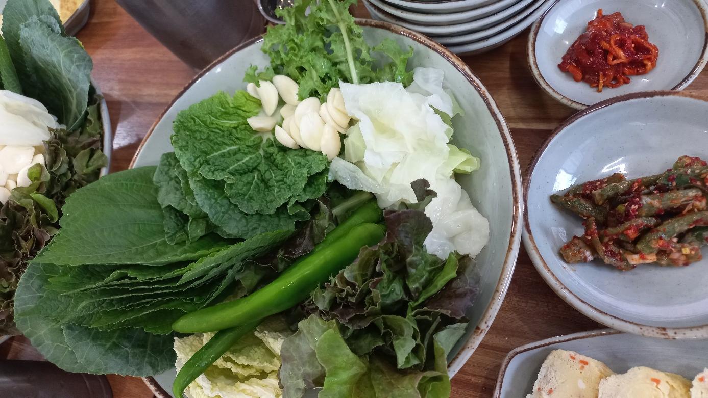 요새 야채가격이 금값이라서 마음대로 야채를 먹기도 힘든 상황인데 쌈채소가 무한리필이라니. 이미 그거 하나만으로도 돈값은 한거나 다름이 없다. 무엇보다 좋아하는 사람들과 즐거운 대화를 나누면서 무한하게 쌈밥을 먹을 수 있다는 자체가 이미 힐링이고 즐거움이었다. 반찬 가짓수도 많았지만 무엇보다 반찬 하나하나가 간이 딱 맞고 맛이 있었다.
