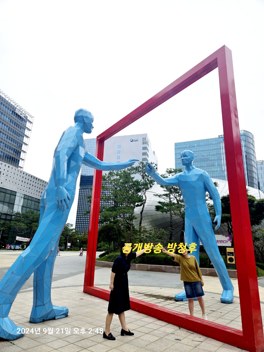 들어갈때는 못 봤지만 나올때 보니 20년이상 라디오 방송을 한 진행자의 입술을 본 딴 금마우스상이 전시되어 있었다. 앞으로 더 많은 금마우스상이 만들어질테지만.... 한가지 일을 20년 넘게 했다는 자체가 이미 대단한 일이다. 상암동은 여러 방송사가 모여 있어서 멋진 고층건물들이 숲을 이뤘다. 방송국 건물 사이를 지나다보면 여기가 진정한 도시 느낌이 나는 곳이구나 하는 생각이 들었다. 멋진 방송국 건물 앞에서 인증샷도 찍고 가을을 시작하는 주말을 보내게 되었다.