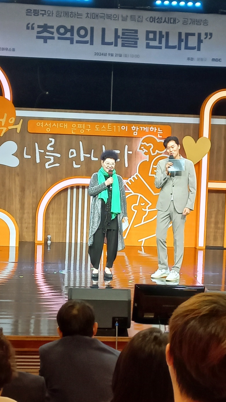 은평구와 함께하는 치매극복의 날 특집 여성시대 공개방송에 당첨되어 방청을 하게 되었다. 원래는 다른 사람이 방청을 포기 해서 내 차례까지 오게 된 것이다. 마침 주말 일정이 비어 있던 터라 나에게는 좋은 기회였다. 급히 동반할 친구를 섭외하고 신청을 했다. 1시부터 공개방송이 시작되는데 12시까지 오라고 한 것이다. 입장은 12시 30분부터.... 뭐하러 이렇게 빨리 오라고 하는 것인지.... 난 11시 48분에 도착을 해버렸다. 시간이 남아서 친구와 커피숍에서 대화를 하다가 방청을 하러 입장. 일찍 줄을 선 덕에 한 가운데 좋은 자리에 앉을 수 있게 되었다.