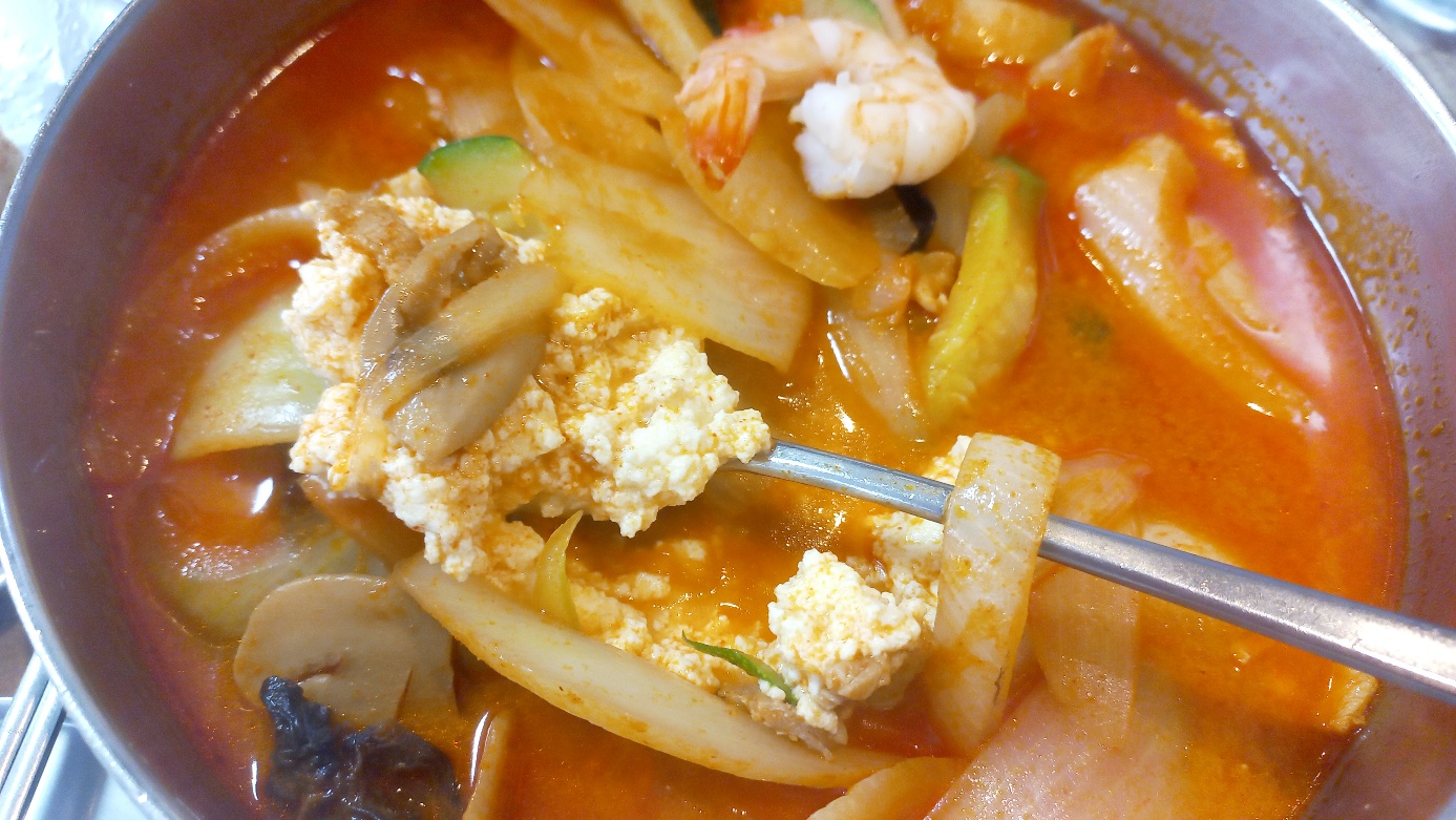 외관은 그렇게 화려하지 않았지만 겉보기와 달리 내부는 상당히 넓어서 좌석이 많았다. 주로 둘이서 데이트 나온 사람들과 등산복 차림의 손님들이 많았다. 우리는 짬뽕 순두부와 찹쌀 탕수육을 시켰다. 짬뽕 순두부는 비주얼이 좋았다. 일반 짬뽕에 면 대신 순두부가 들어있는 것이다. 국물맛도 얼큰한 짬뽕 국물에 순두부가 듬뿍 들어있었다.